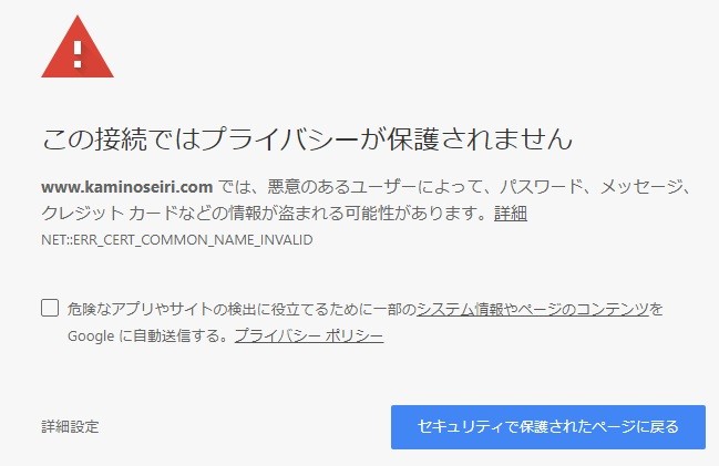 この間は今まで通り「http:~」でアクセスするとページは問題なく表示され、「https:~」へアクセスするとエラー画面しか表示されない状態が続きます。