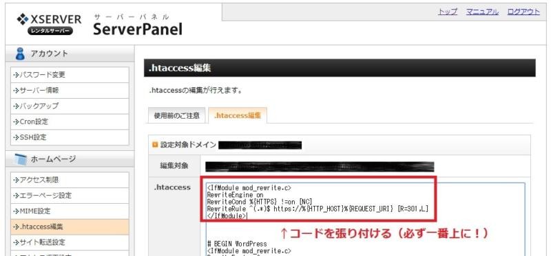 - http:へのアクセスをhttps:へリダイレクトするよう.htaccessにコードを追加する