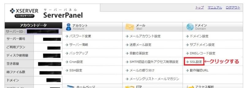 - 「SSL設定」をクリックします