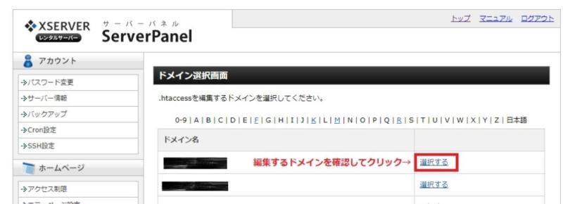 - 編集するドメインを確認して「選択する」をクリックします
